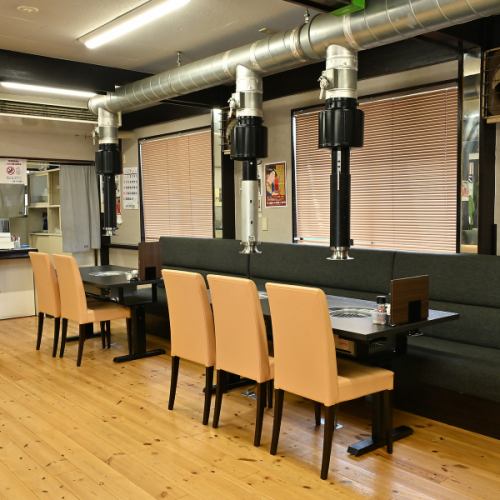 【桌席】桌席非常适合小团体聚餐!明亮宁静的氛围非常适合用餐,与亲朋好友也能轻松愉快地聊天。即使是初次光临,也能在温馨舒适的店内尽情享用烤肉和内脏。这是一个舒适而迷人的空间。