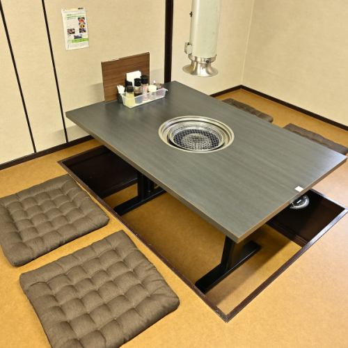 【地炉席】下沉式被炉席,让您舒展双腿,是享用烤肉的理想空间。也推荐带孩子的家庭使用。我们提供4人座和6人座,可根据人数安排座位。非常适合下班后的聚会或节假日!